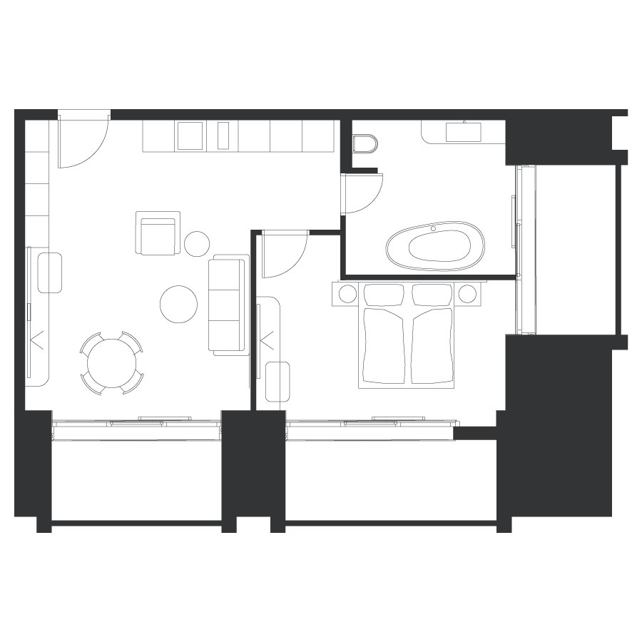 | 1.517 | 2.32 | Junior suite | Standard | 1 | 2 | NIE | 30-40 | 39,77 | Voľný | 306 000 € |